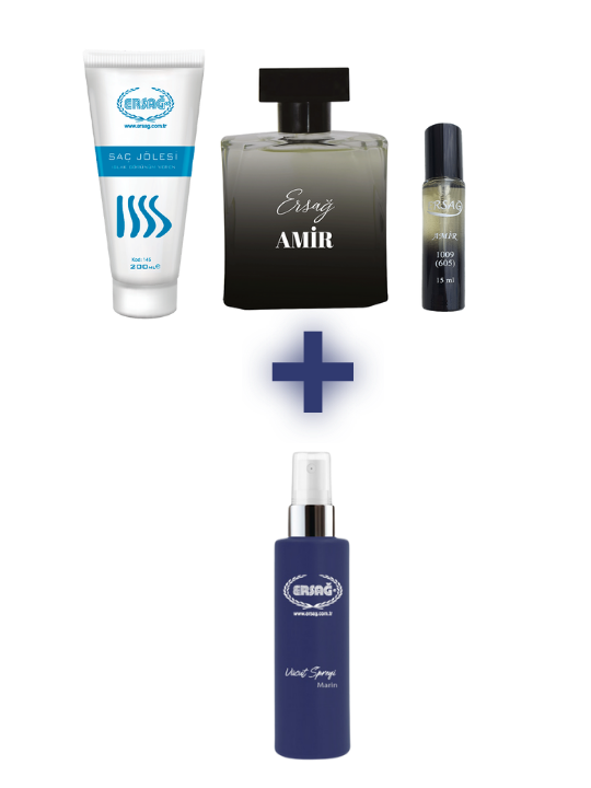 AMİR EDP ERKEK PARFÜM 100 cc.AMİR ERKEK PARFÜM 15 ML,SAÇ JÖLESİ ISLAK GÖRÜNÜM 200 ML ALANA VÜCUT SPREYİ MARİN 200 ML
